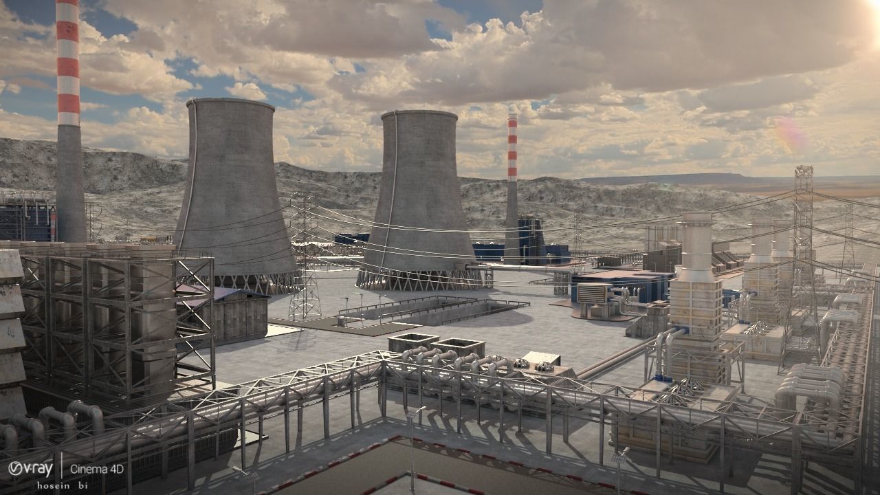 83-电力工厂发电站厂房建筑3D模型