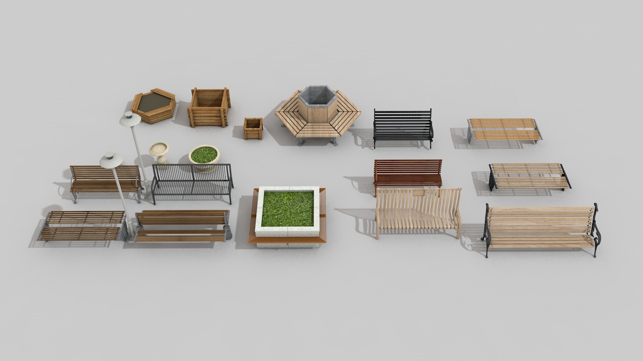 121-户外公用设施公园路边座长椅子C4D模型
