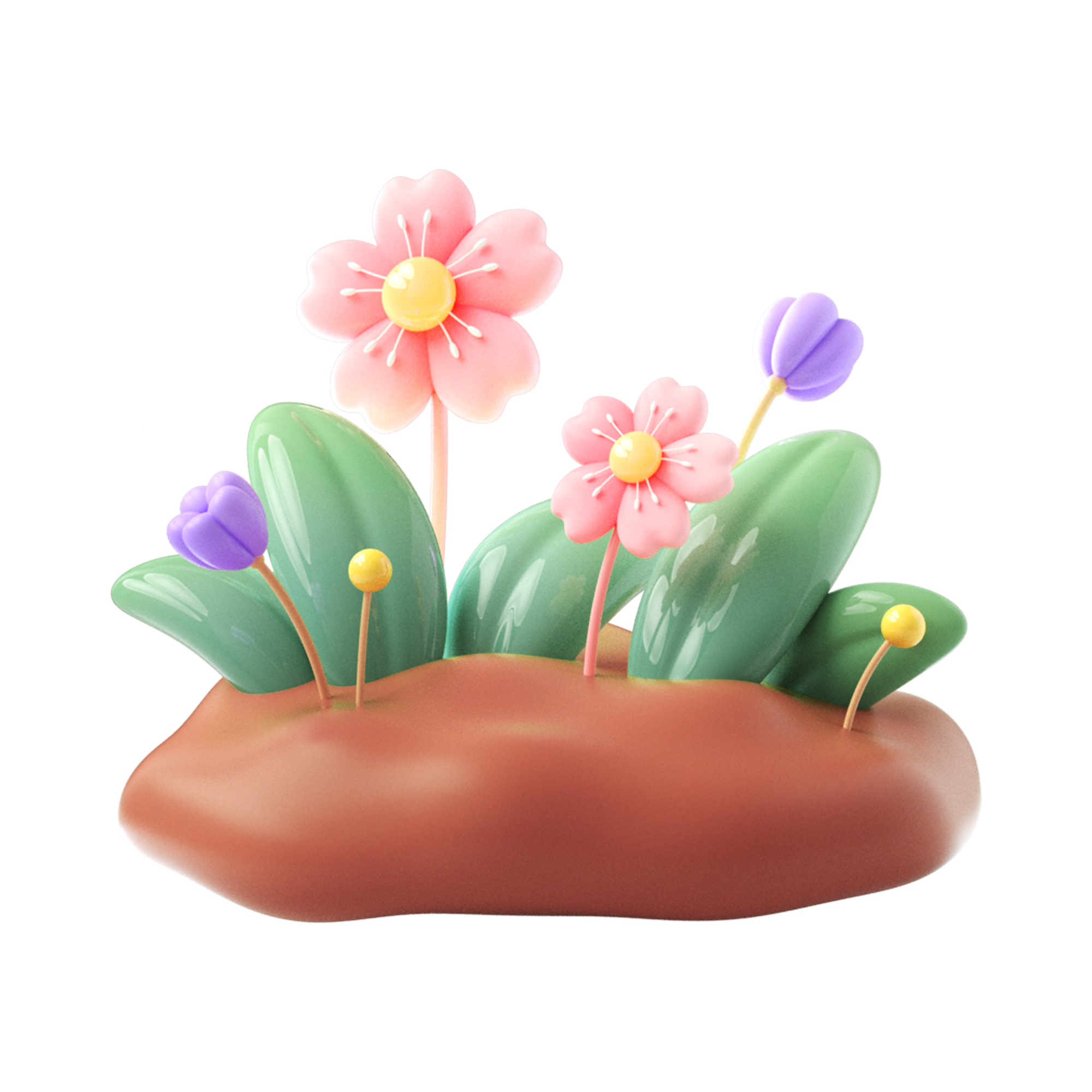 74 C4D基地-卡通粉色樱花草丛 草坪