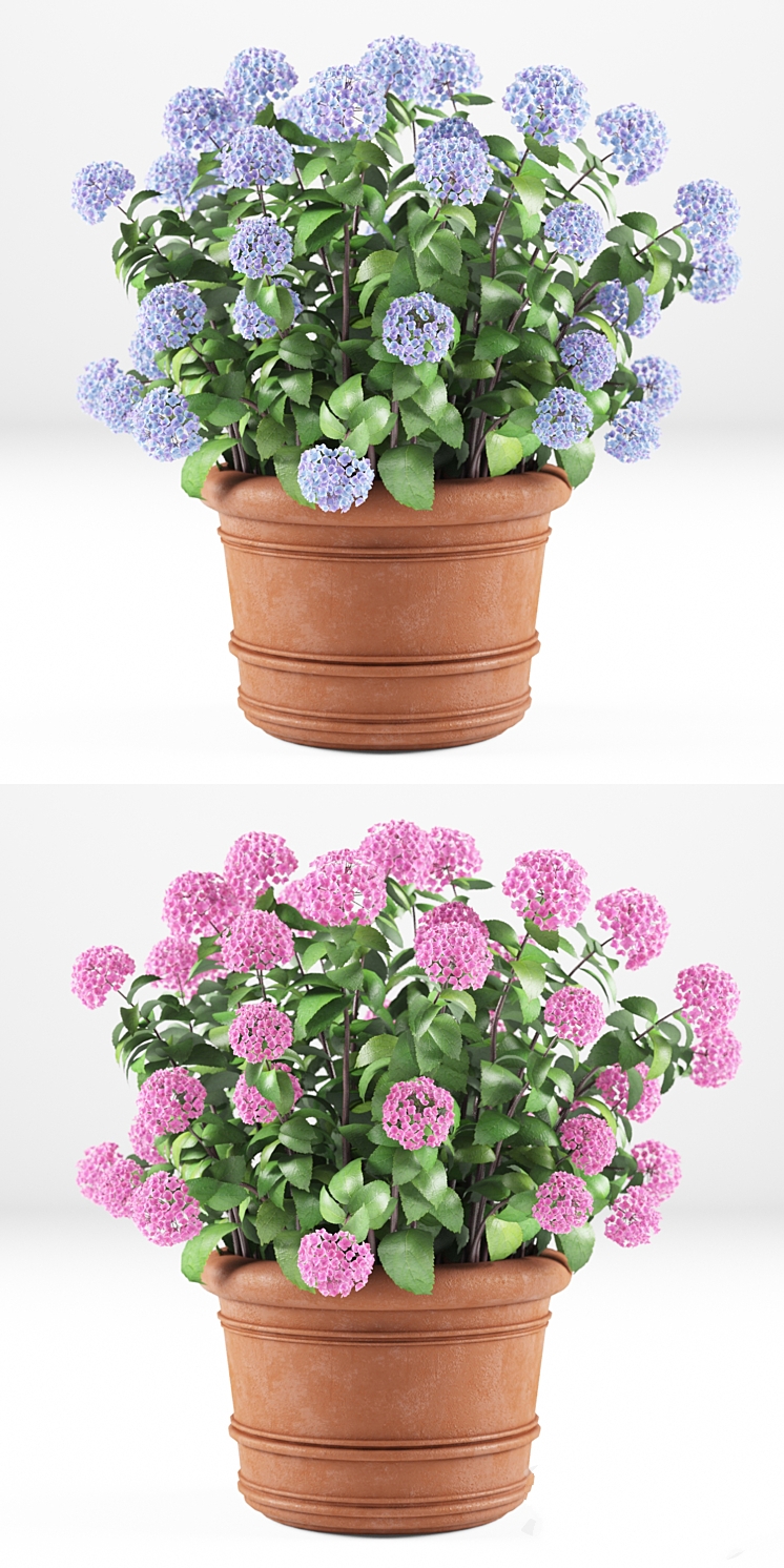 113 C4D基地-绣球花盆栽植物 绿植花盆真实花卉花朵写实