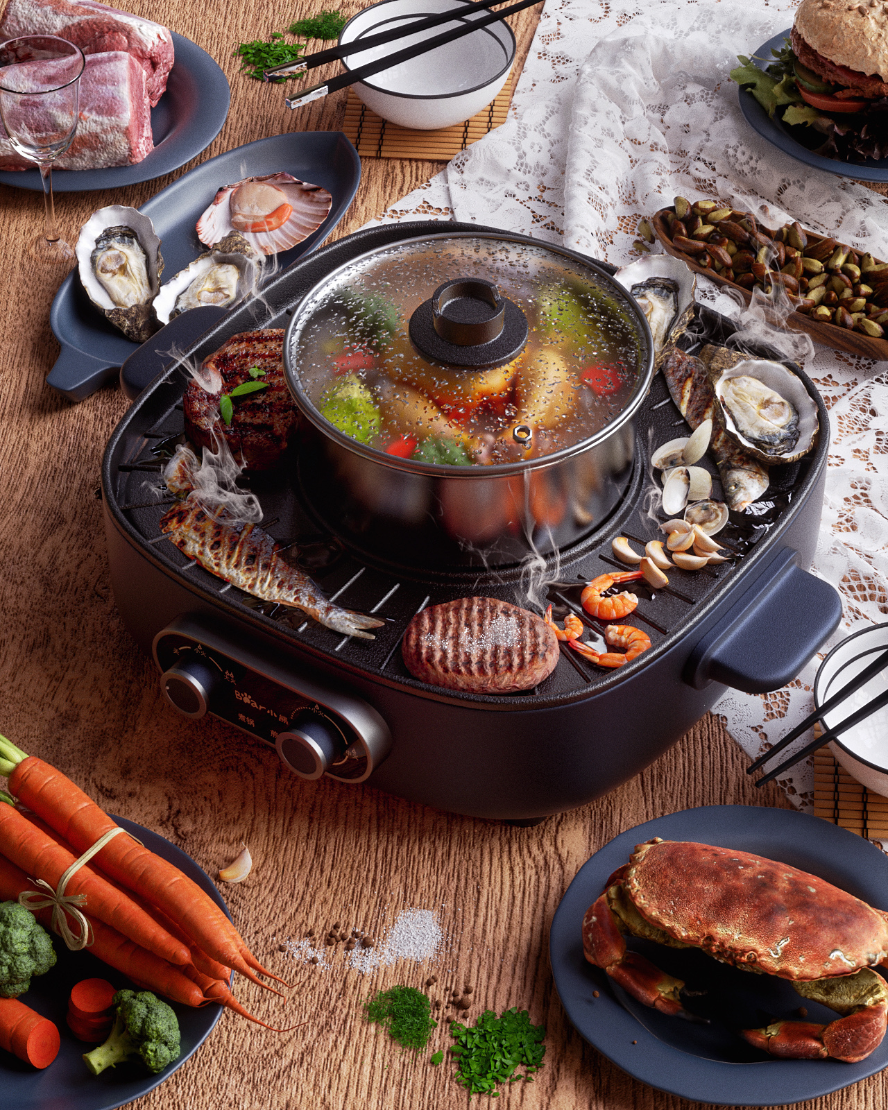 30 C4D基地-海鲜烤肉生蚝螃蟹