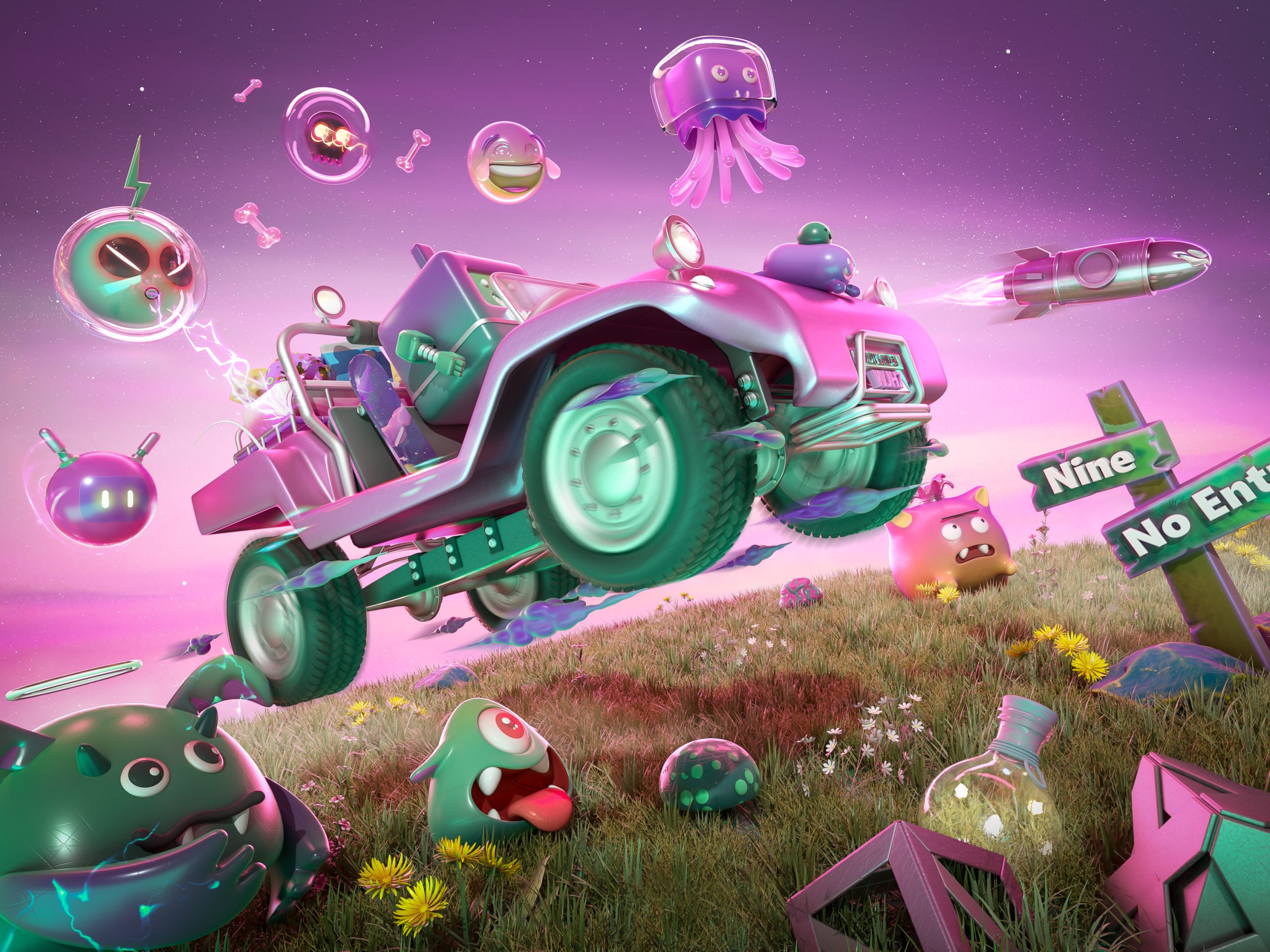 313 C4D基地-卡通水母幻影越野车紫世界场景
