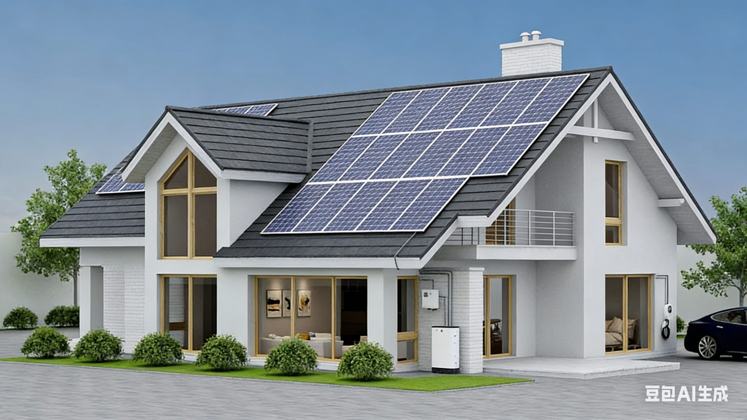 现代 独栋别墅 别墅太阳能光伏