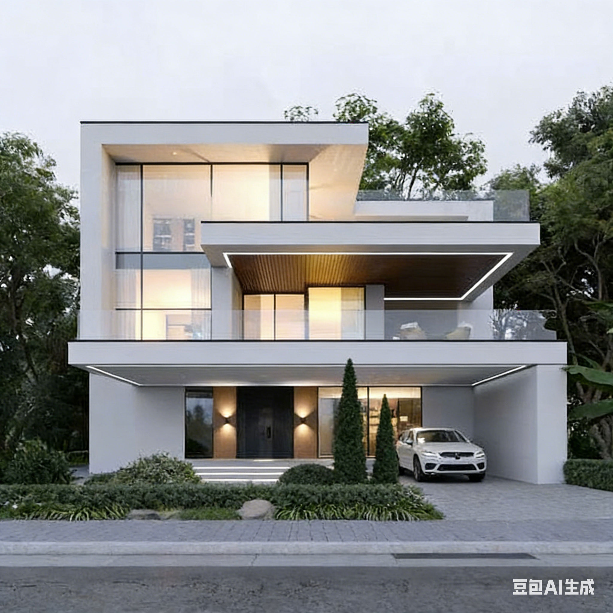 现代别墅建筑外观 现代二层别墅 草地