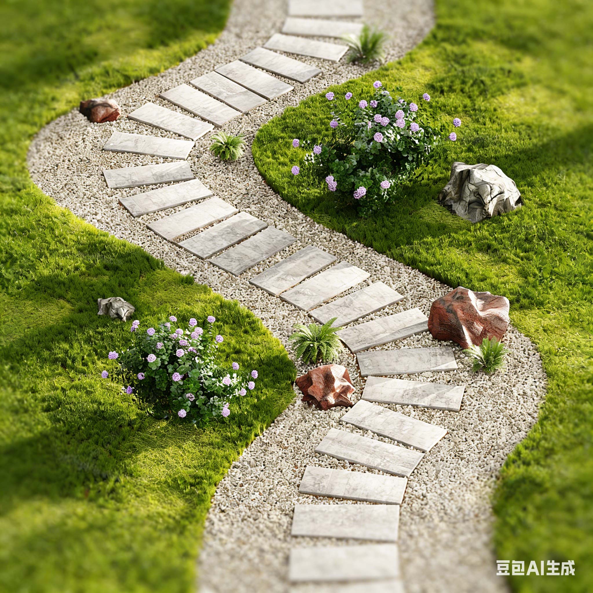 现代景观汀步 微地形 园林铺地 青石板 园路 石阶
