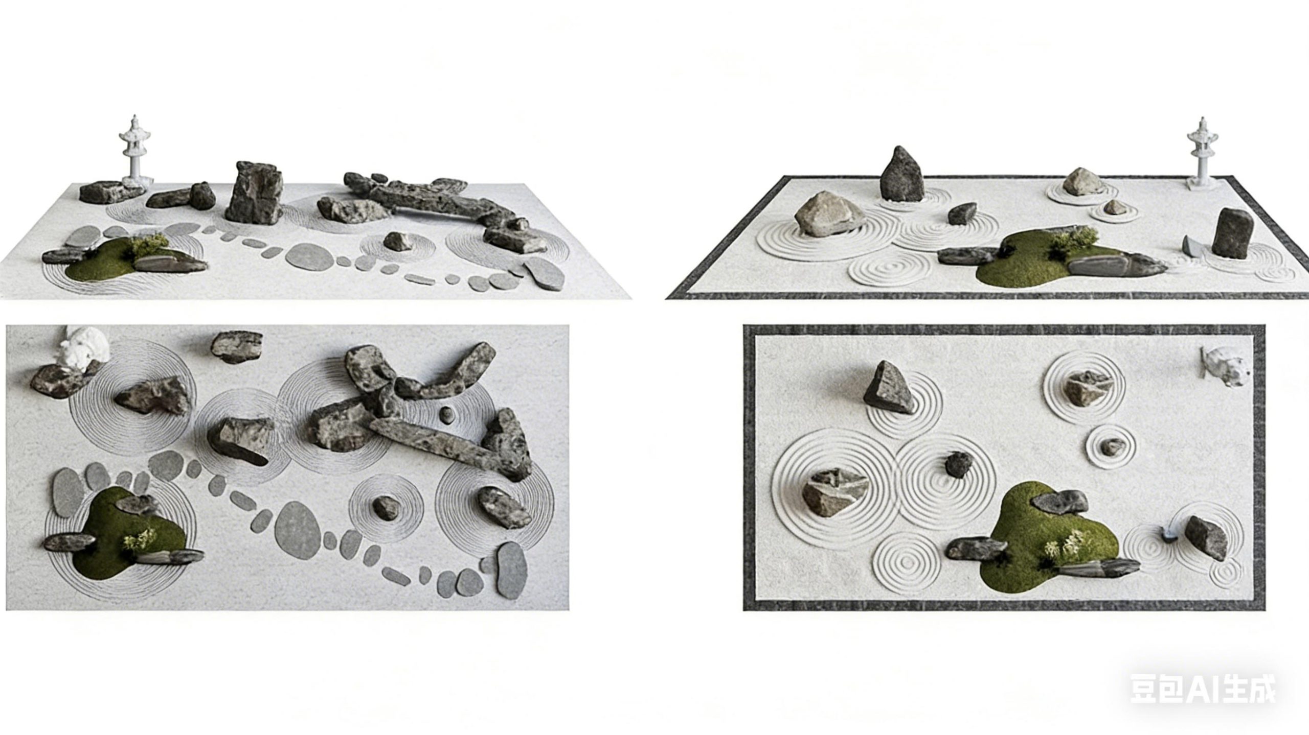 日式园林枯山水景观 庭院景观 假山景观
